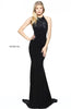 Fitted scuba with a beaded bodice and open back with a beaded train.