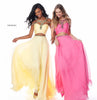 Chiffon two piece with beaded strap and belt detail.