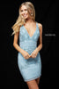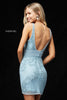 Beaded deep V neckline cocktail dress.