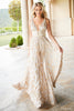 Metallic cross dyed gown with plunging V neckline, triple waistband, and tassel tie around waist.