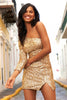 Fitted one shoulder cocktail dress with tiny slit at hem.