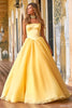 Strapless organza ball gown with a satin corset bodice and beaded Swarovski beaded choker.