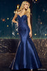 Fitted mermaid lace mikado gown with hot fix stones and low back.