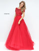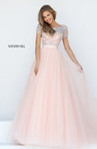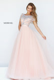 Tulle ball gown with cap sleeves and a beaded bodice.