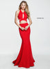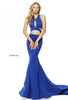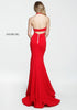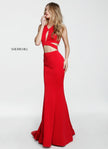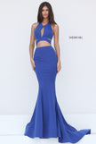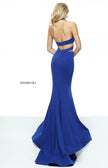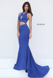 Fitted jersey mermaid with keyhole bodice and cut out sides and midriff.