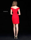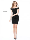 Sequin stretch scuba cocktail with off shoulder bodice.
