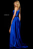 Silk charmeuse two-piece with high neck bodice and slit skirt.