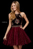Velvet bodice with bead appliques and sequin tulle cocktail skirt.