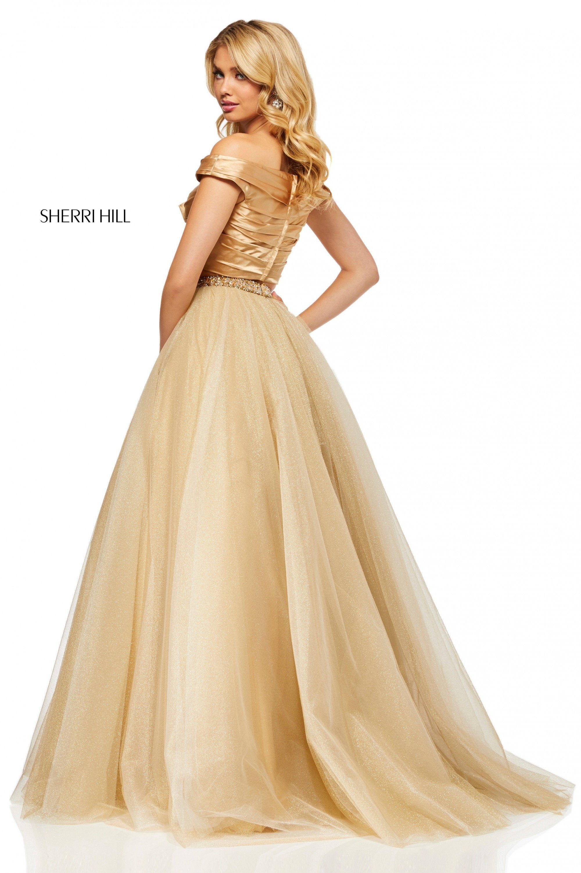 Metallic tulle two-piece ball gown with satin twist front bodice.
