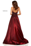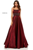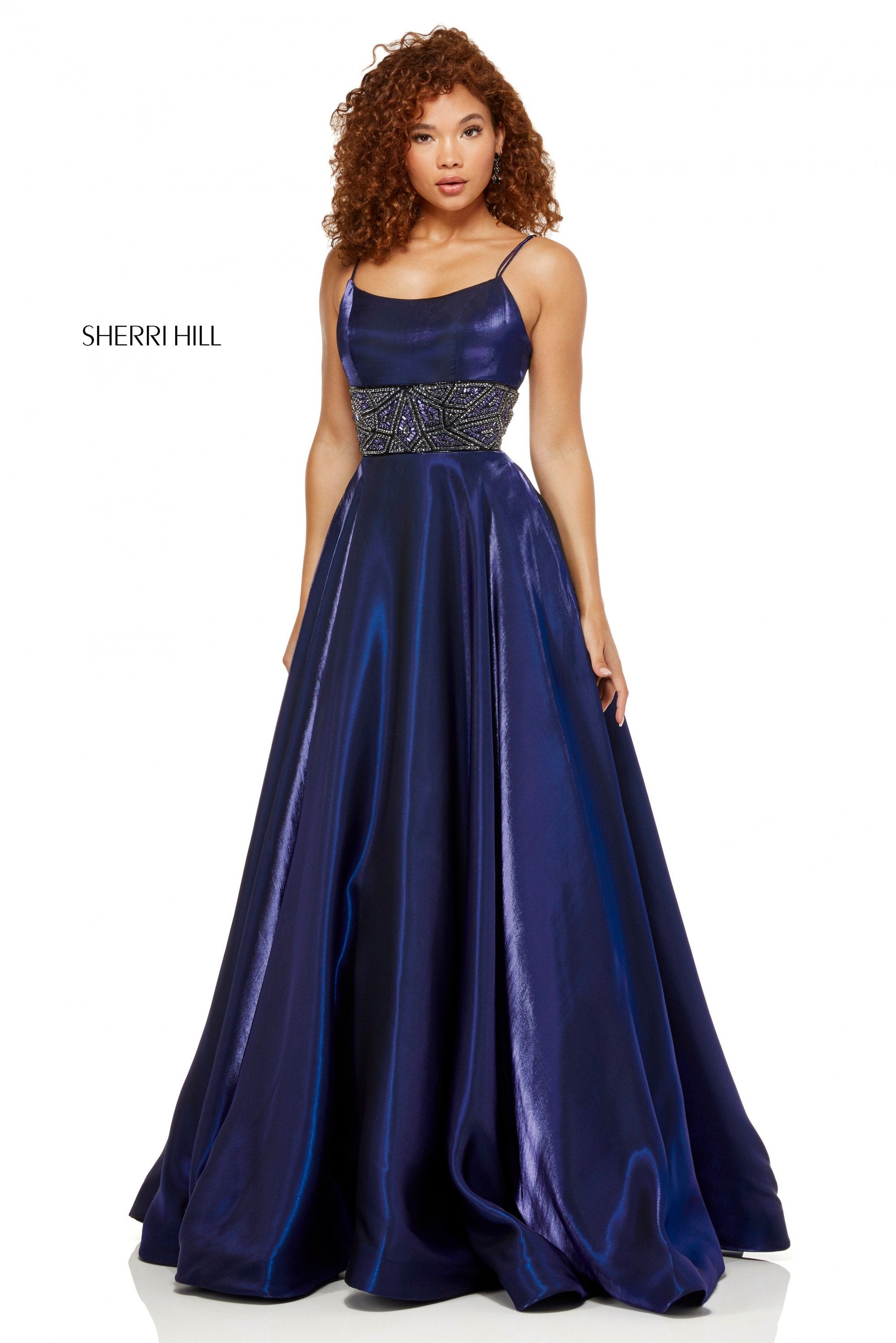 Cross died shimmer ball gown with beaded waistband.