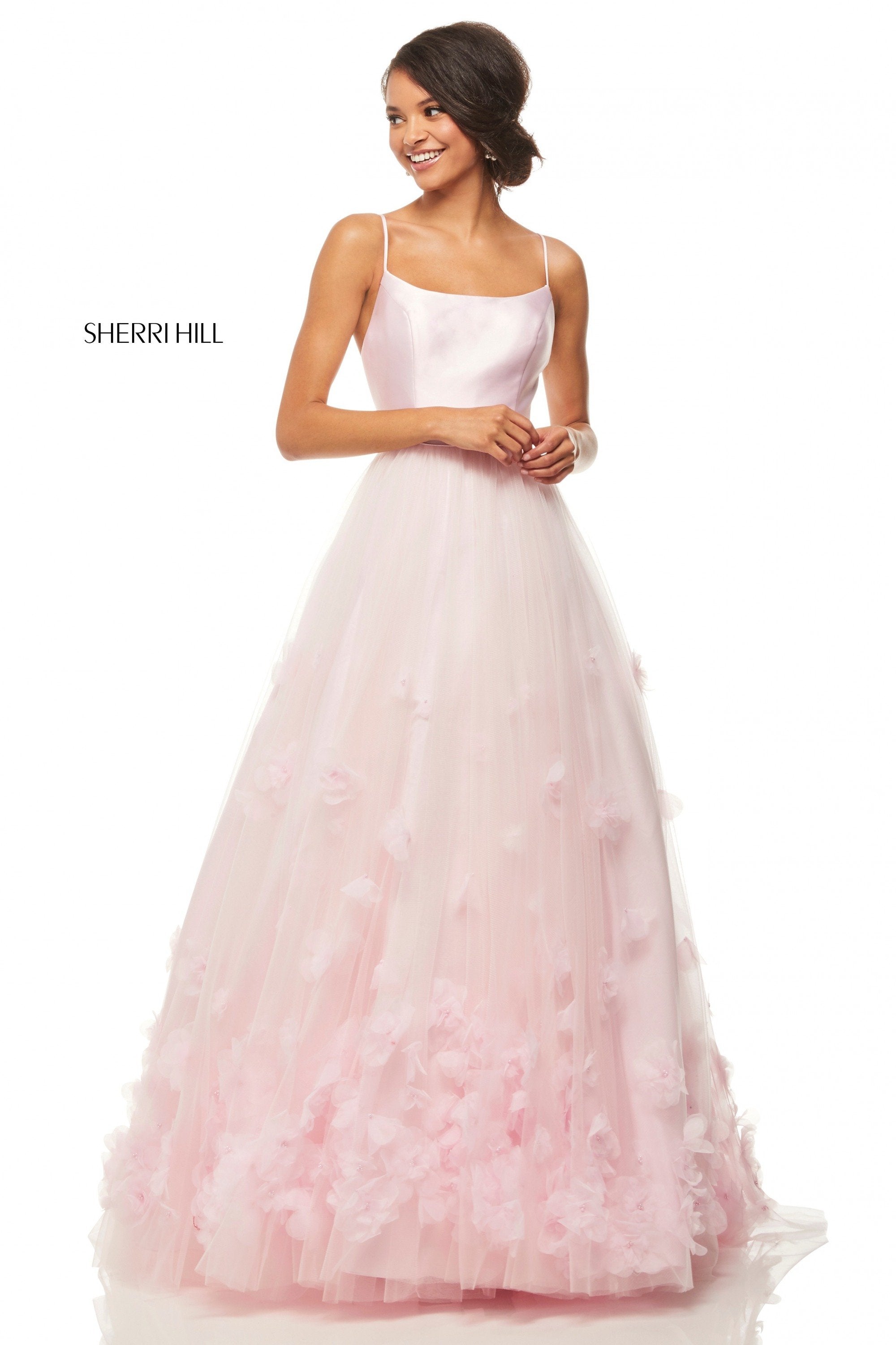Tulle ball gown with 3D flowers and a mikado spaghetti strap bodice.