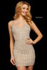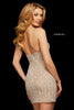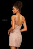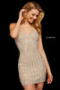Beaded V neckline cocktail dress.