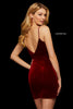 Velvet fitted cocktail dress with modified sweetheart neckline.