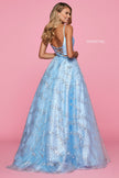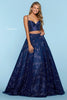 Two piece with sweetheart neckline mikado top and lace up back, with scattered micro sequin tulle ball gown skirt with stars.