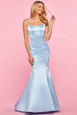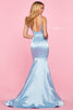 Mikado mermaid with rounded neckline and spaghetti straps.