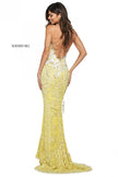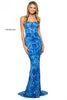 Pattern beaded and sequins column dress with straight neckline and lace up back.