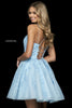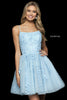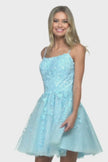 Leaf lace appliqued glitter tulle A-line cocktail dress.