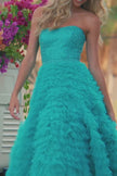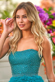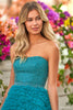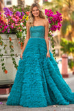 Swarovski beaded strapless bodice with ruffle skirt ballgown.