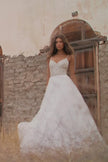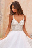 Swarovski beaded spaghetti strap bodice with sequin tulle skirt.