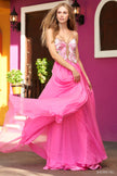 Silk skirt gown with beaded butterfly top and open back.