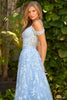 Lace gown with tulle over skirt, deep V sheer neckline, and off the shoulder sleeves.