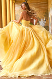 Strapless organza ball gown with a satin corset bodice and beaded Swarovski beaded choker.