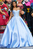 Off the shoulder ballgown with hot fix corset bodice and mikado skirt.