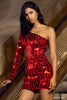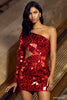 One shoulder scuba cut glass mirror cocktail dress with a side cut.