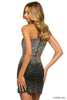 One shoulder scuba hot fix embellished cocktail dress with side cut out.