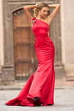 One shoulder silk mermaid gown with beaded embellishments on the bow.