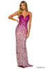 Ombre sequin gown with deep V illusion neckline, and lace up back.