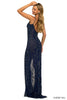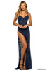Fully beaded gown with sweetheart neckline, and high side slit.