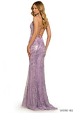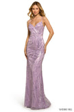 Sequin fitted gown with sweetheart neckline and lace up back.