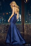 Fitted mermaid lace mikado gown with hot fix stones and low back.