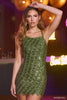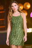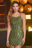 Sequin beaded cocktail dress with high neckline and criss cross open back.