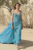 Beaded gown with taffeta overskirt.