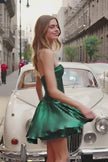 Metallic strapless corset cocktail dress with keyhole and an A-line pleated skirt.