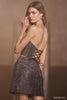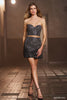 Two piece hot fix cocktail dress with strapless corset bodice.