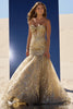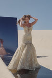 Strapless sequin mermaid gown with sheer key hole bodice.