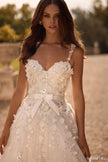 3D flower ball gown with sweetheart neckline and ribbon bow waistband.
