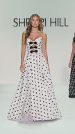 Strapless taffeta with bow bodice and slit skirt.