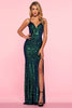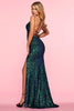 Machine sequin fitted gown with sweetheart neckline, lace up back and skirt slit.